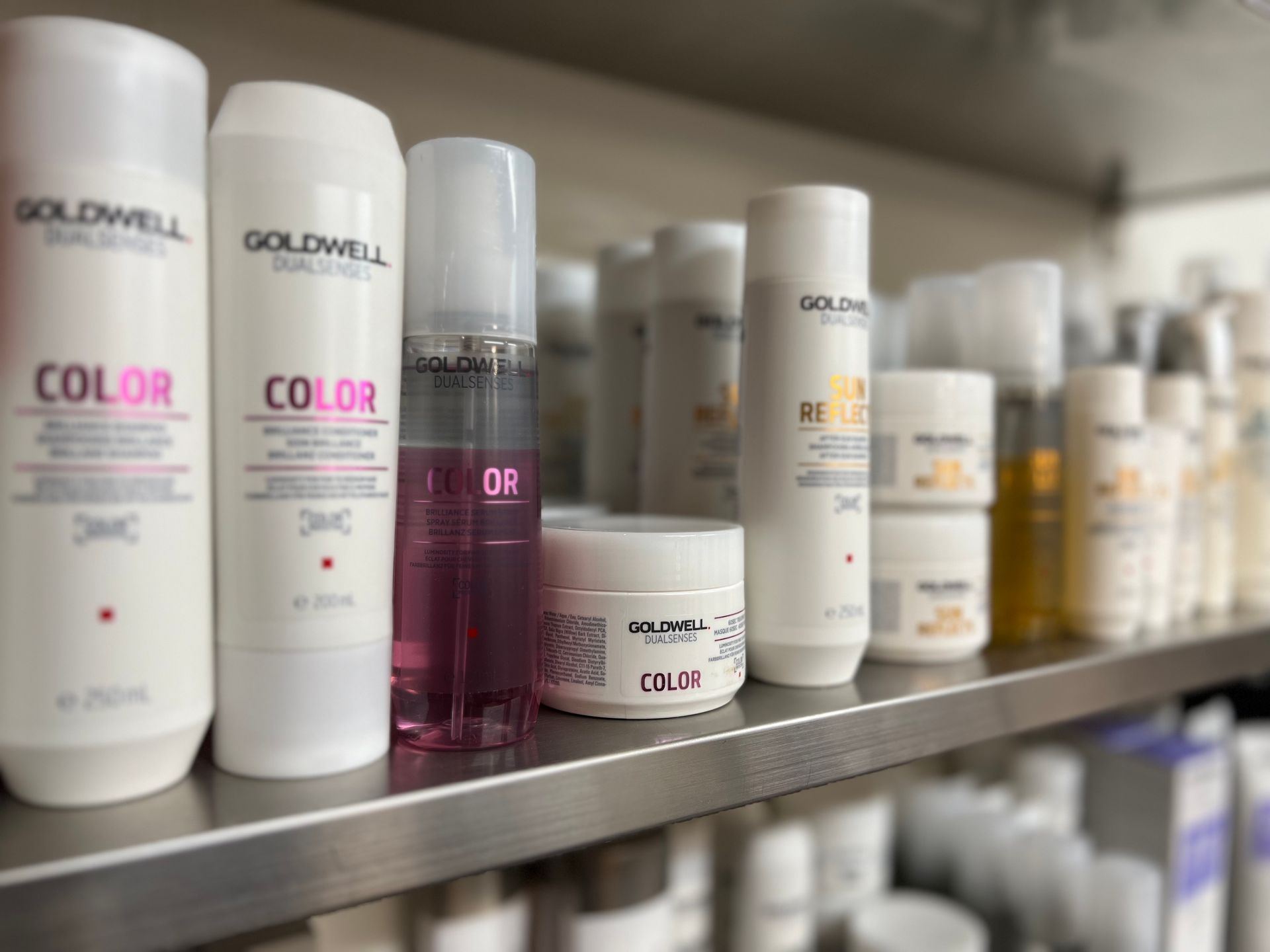Das umfassende Pflege-Sortiment von Goldwell beinhaltet Produkte für aussergewöhnlichen Farbbrillanz, für mehr Volumen, weniger Spliss, enthält UV-Schutz, verbessert die Geschmeidigkeit und nährt die Haarfasern so, das die Haare individuelle Pflege erhalten.